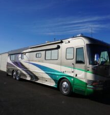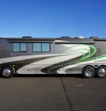 This Country Coach is built on the Country Coach Dynomax chassis with the very powerful C-15 Cat engine.   This has the 4000 Allison Transmission and 3 stage jake brake.  This coach is fully equipped with two large Girard patio awnings and another one on driver side, combo washer dryer, mid ship TV, radiant floor heat under tile, Hydro Hot heating, Silverleaf digital dash and much much more.