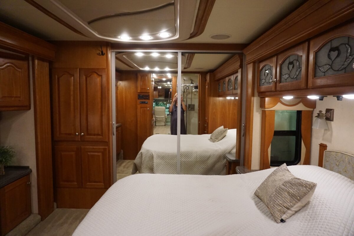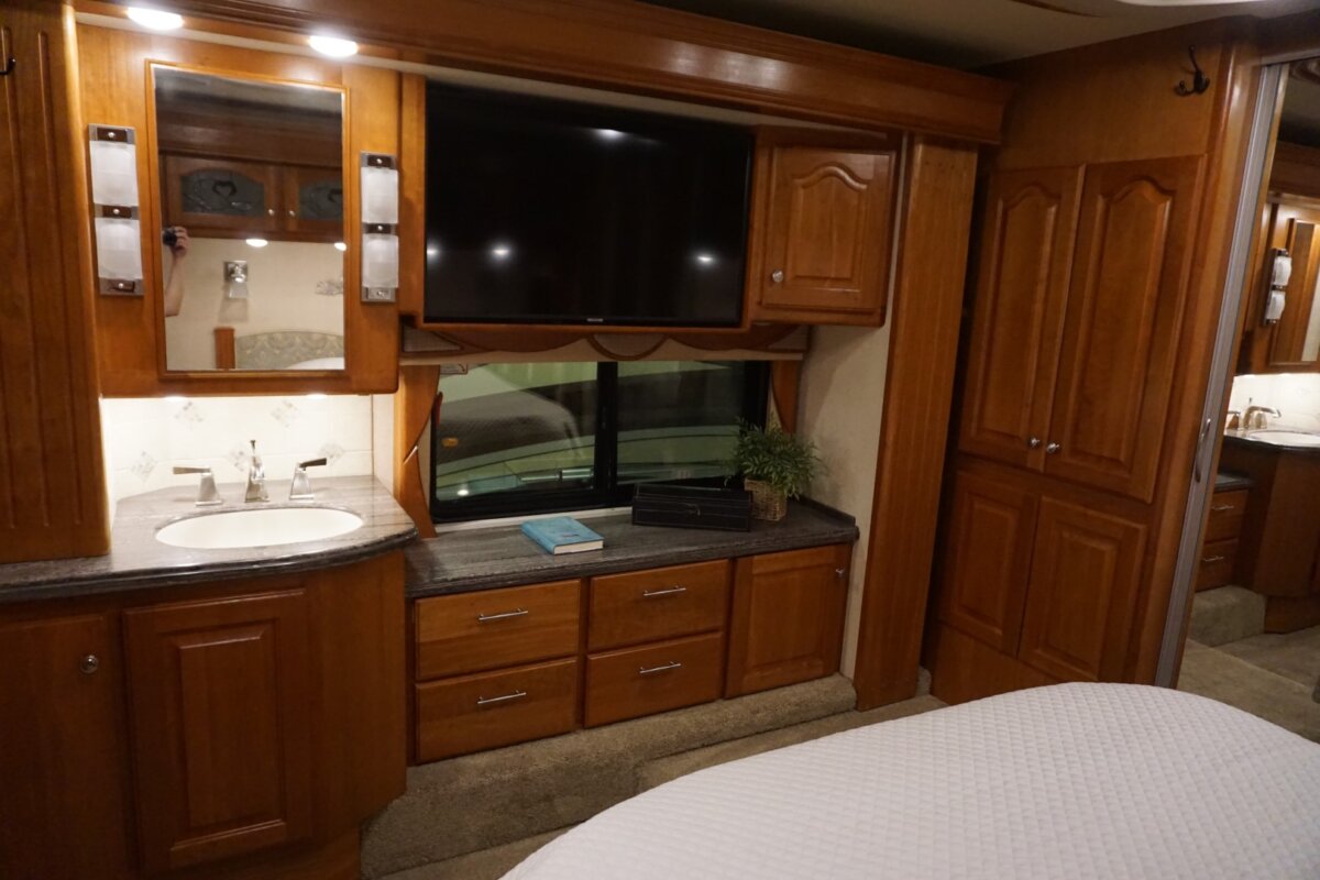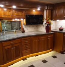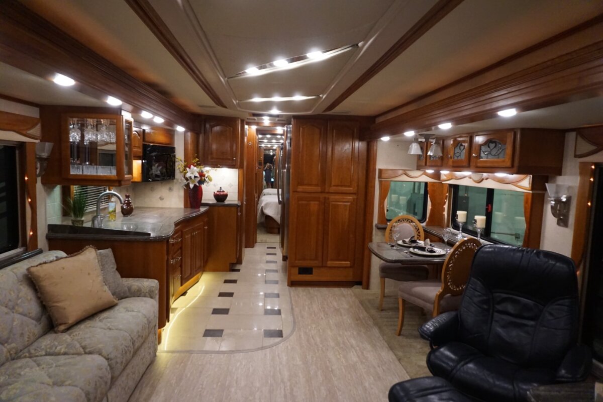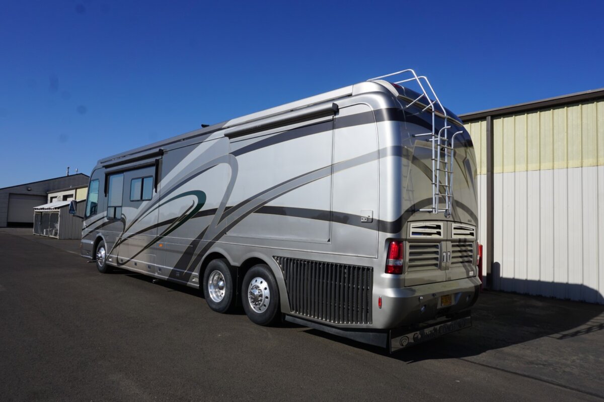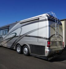 This 2005 42 Country Coach Magna is in excellent condition. This coach has been well maintained and garaged its whole life and it shows. The paint is in excellent condition. This coach is on the Country Coach Dynomax chassis which is a semi-monocoque chassis with Independent front suspension. This coach maneuvers very well due to the front end turning at 55 degrees. This coach is powered with a 525 C-13 cat engine with a 3 stage jake brake and 6 speed Allison transmission (1,650 torque). This coach has had many upgrades and items done to it over the years. Here is a list of just a few: 2 roof mounted awnings, electric window awnings, radiant floor heat in galley and bathroom, combo washer dryer, Upgraded SMART TV’s, new tile in living room, Electric windshield interior shades, Newer Tru Induction cooktop, Newer Residential Refrigerator, New bedroom carpet, New LED lighting interior, Upgraded back up camera and much much more.
