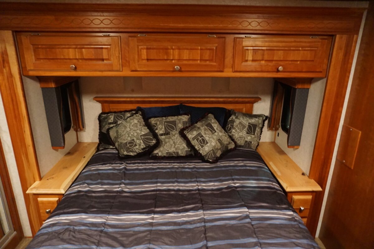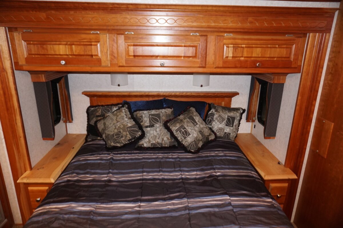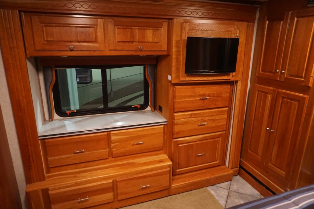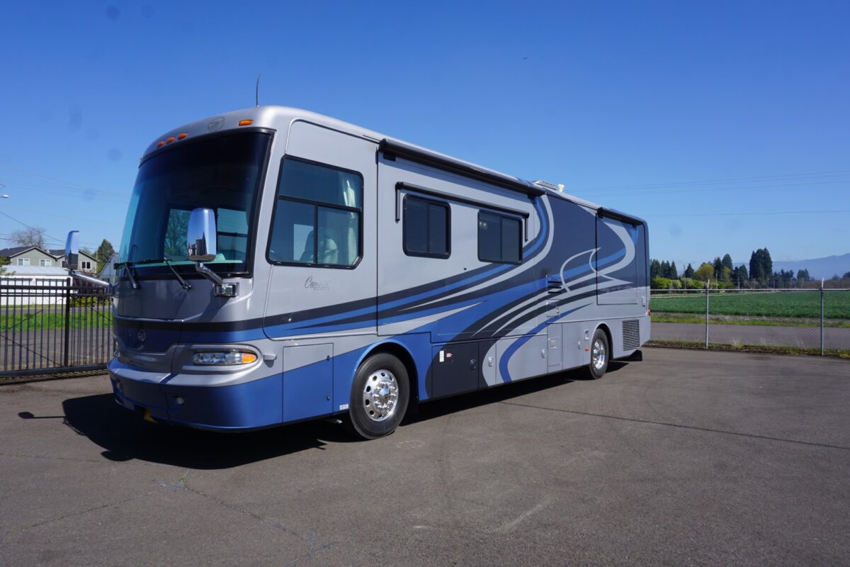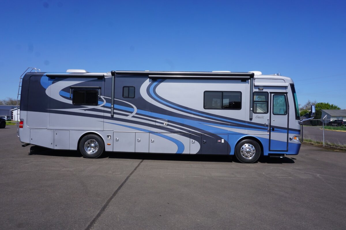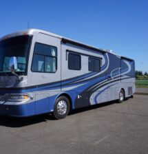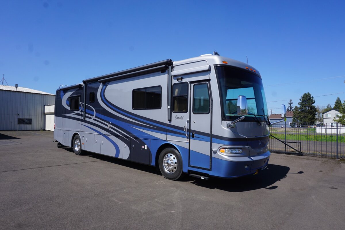 2006-38PDQ Camelot, super rare 38’ Quad slide, only 46,795 miles. Roadmaster Custom Chassis, 400HP Cummins ISL, Exhaust Brake, Side Radiator, Cherry Hardwood Cabinetry. Several updates including Solar, LVT in living room, and LED TVs. 8kw Onan QD Gen with 579 hours, Full Awning Package, Side hinged Bay doors, & Meticulous owner. Please contact for additional pictures and info. $92,999.00