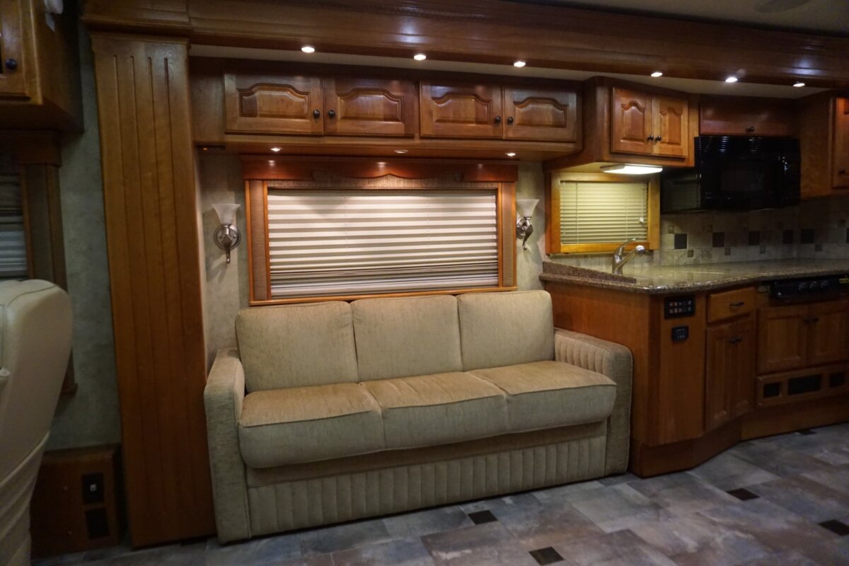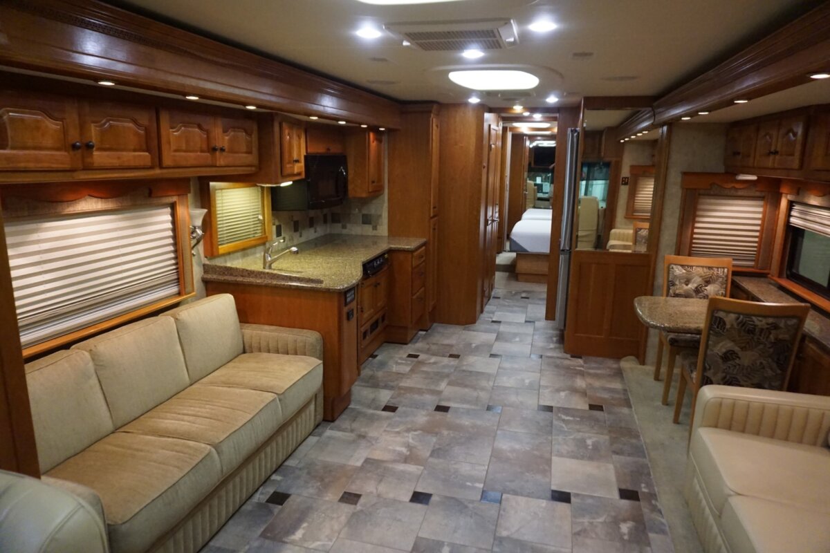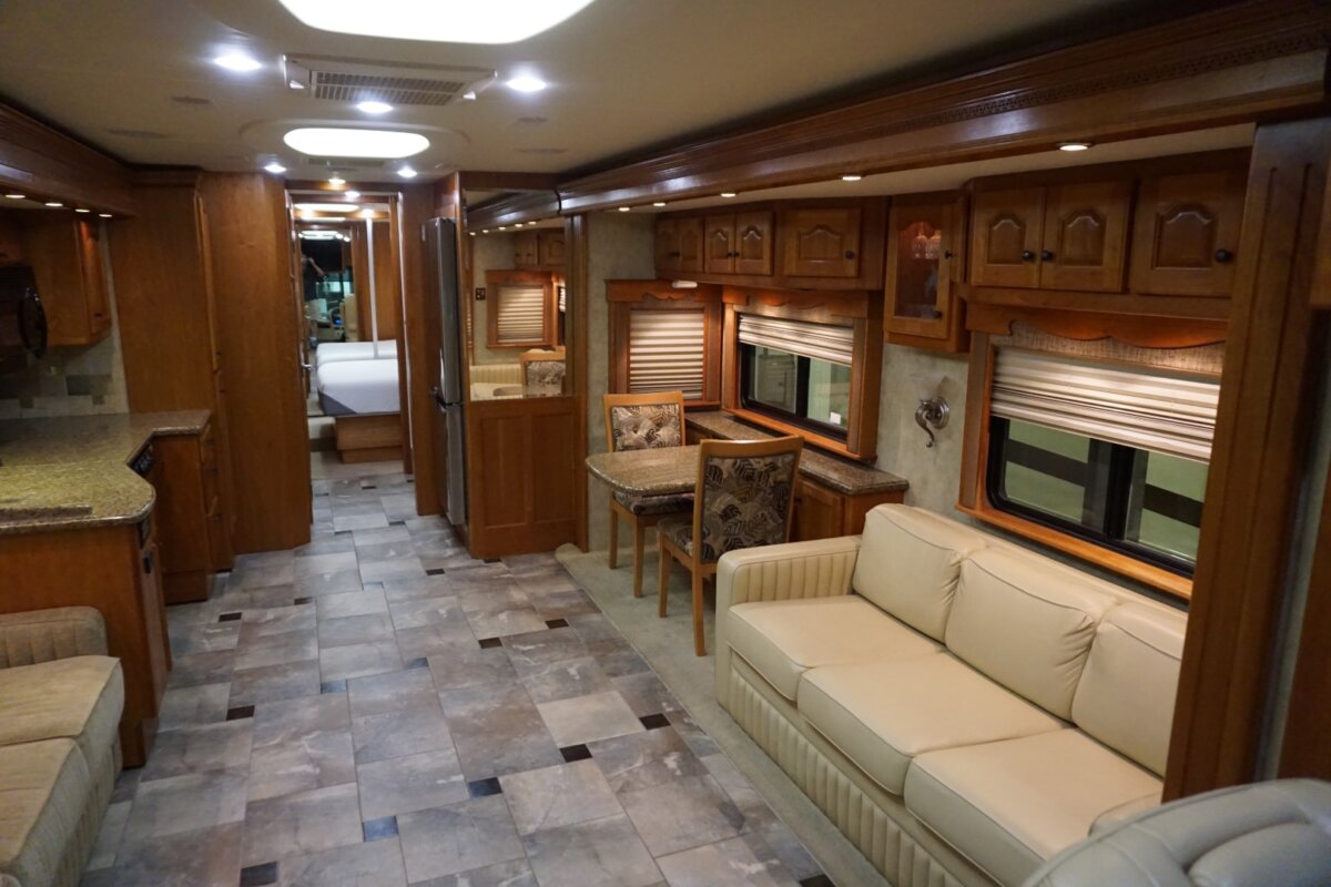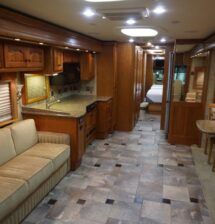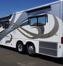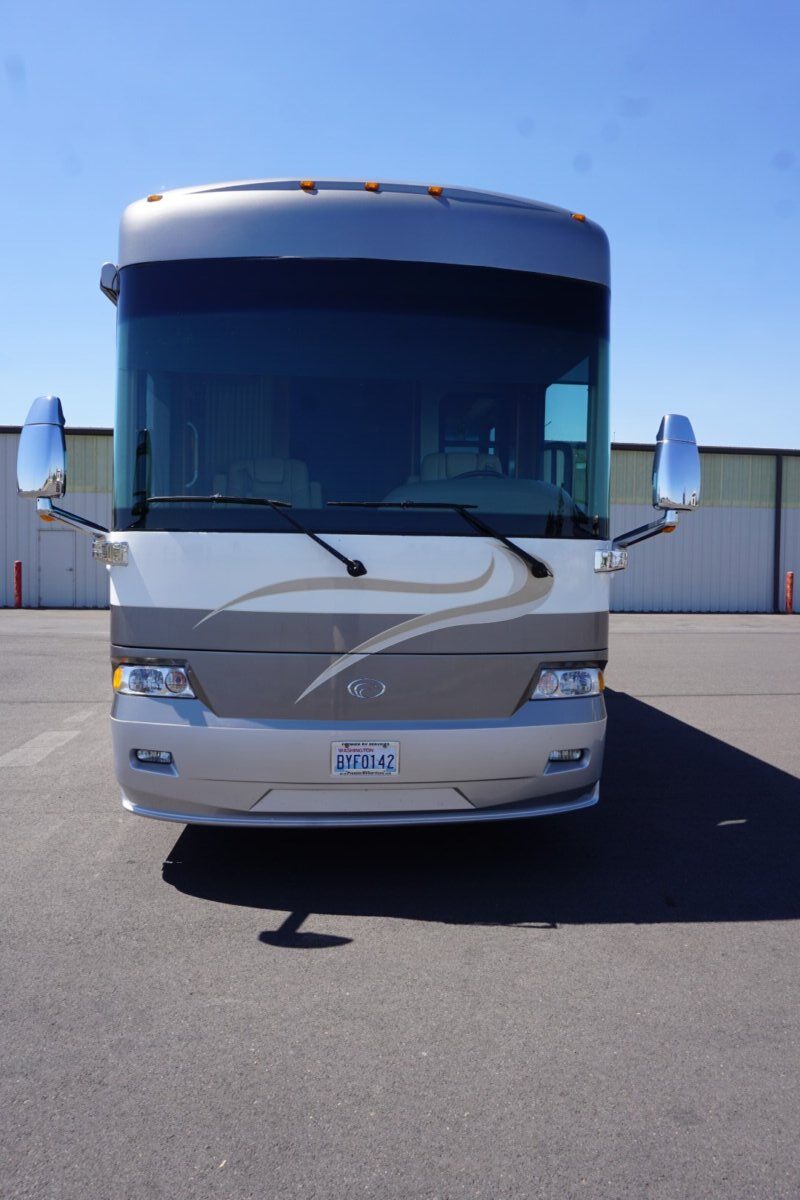This 2008 37 Allure is in excellent condition. The colors on this coach are beautiful very light colors with no micro checking. The interior is also extremely clean. This coach has been garaged kept its whole life and it shows. This coach is on the Country Coach Dynomax. It is a semi monocoque chassis with a 55 degree Independent front suspension. This coach is powered with a 425 Cat and has lots of power. Tons of options on this coach such as stacked washer dryer, radiant floor heat under tile, MCD electric windshield shades, electric patio awning and much much more.