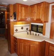 The Nottingham 43 footer is a great floor plan with lots of storage. Very large kitchen, stacked washer dryer, king bed gives you all the features you will ever need. This coach is fully equipped with Girard Patio awning, Custom tile pattern and tile in living room, Lt Cherry cabinets, Residential refrigerator, bedroom ceiling fan, Dinette booth, Insta hot, power cord reel and much much more.