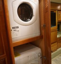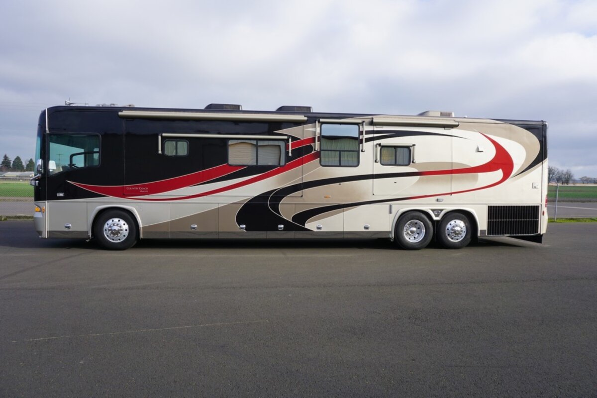 This coach is on the Country Coach dynomax chassis with Independent front suspension that turns at 55 degrees.  Great maneuverability with this coach.  It is powered with the 500 Cummins with no emissions and a 6 speed Allison transmission.