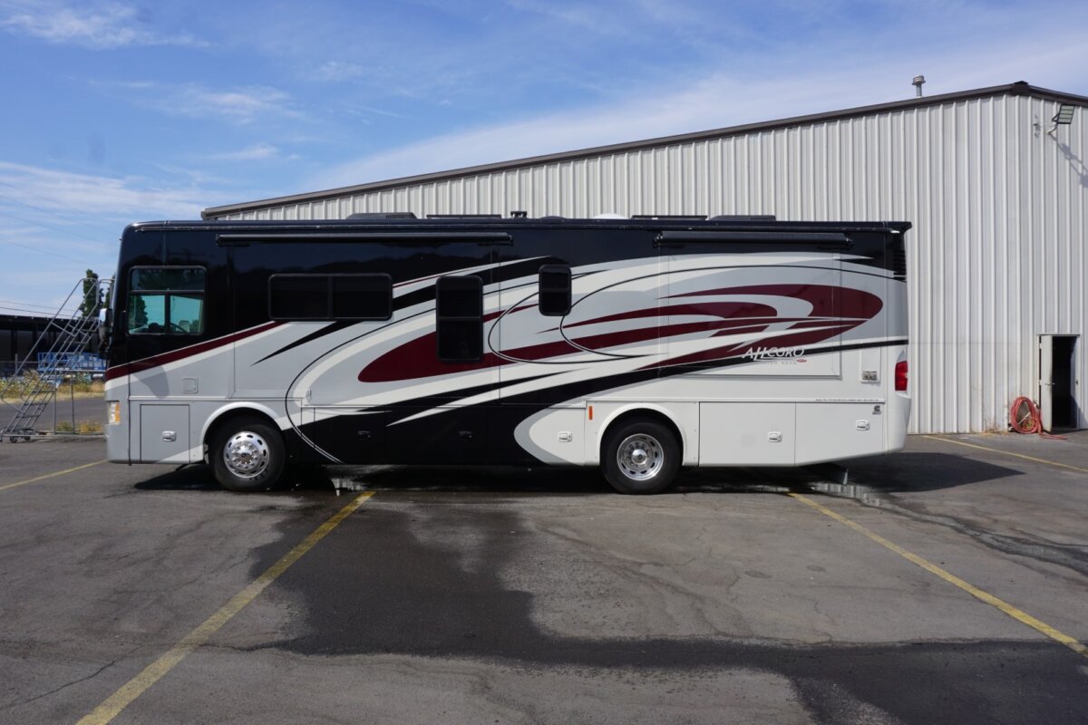 This 2016 Tiffin Allegro Red is an excellent coach with a great floor plan. If you’re looking for a great pre owned diesel pusher that will go anywhere, this is the coach. This coach is on the freightliner chassis and is powered with a 360 Cummins. Great floor plan with lots of storage, king size bed, stacked washer dryer, Residential refrigerator, dinette booth, auto leveling jacks (HWH), and much much more.