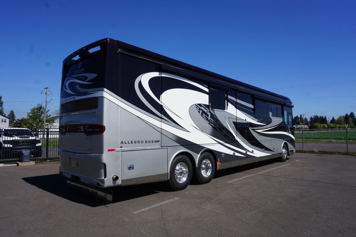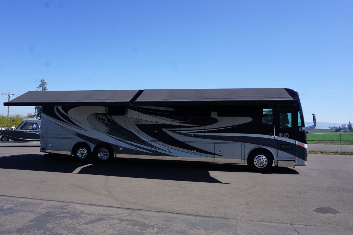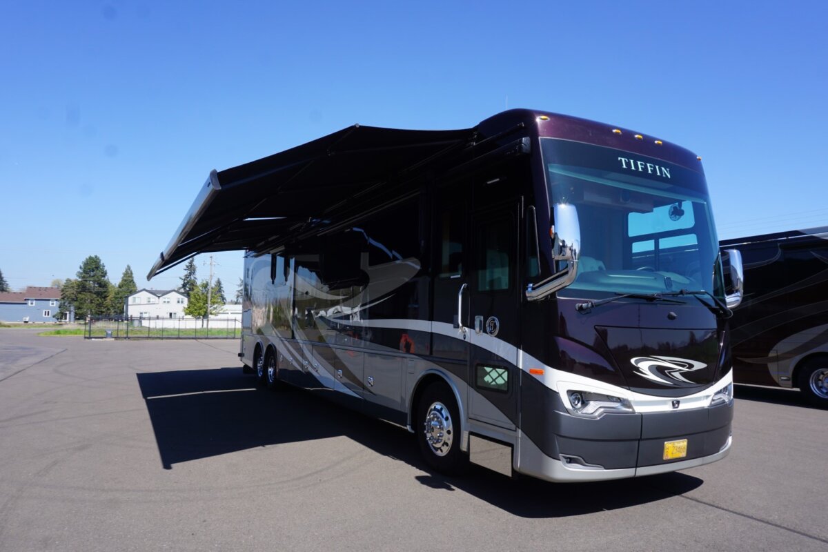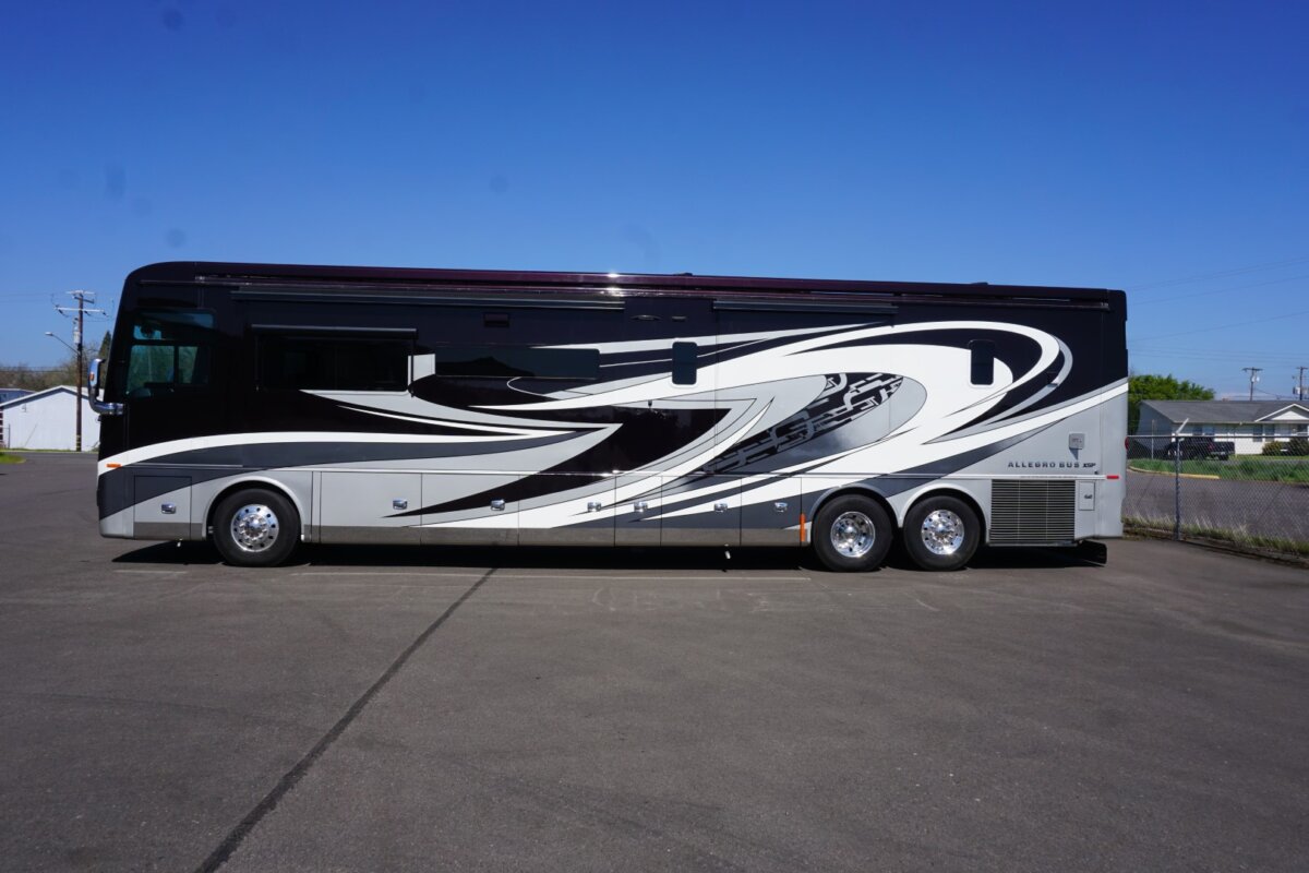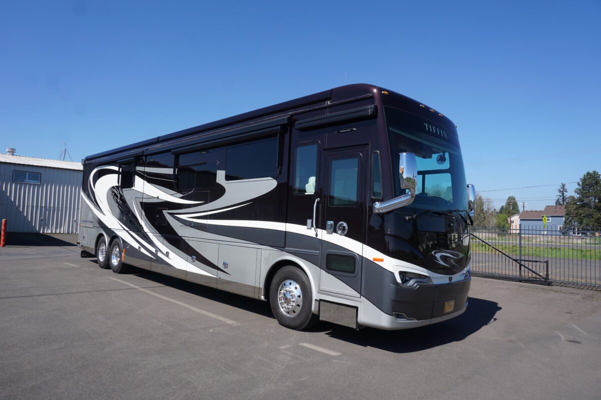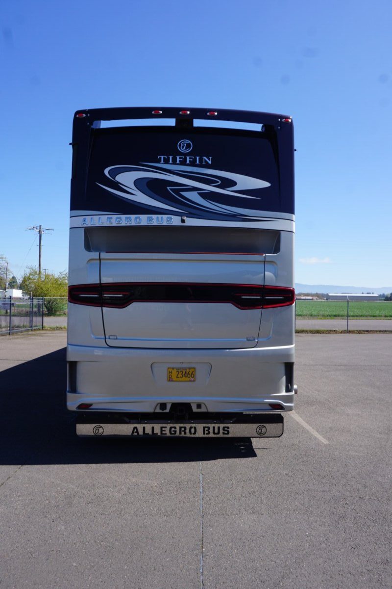 This 2021 Bath And Half 45 OPP Tiffin Allegro Bus is in excellent condition. This is a great floor plan with lots of storage. This coach has too many options to list of all them but here are a few items: Stacked Washer Dryer, Dishwasher, All Electric with Residential Refrigerator and True Induction cooktop, Outside TV , Outside BBQ with sink, TV lift in living room with fireplace, TV lift with fireplace in bedroom, king size bed, huge shower and much much more.