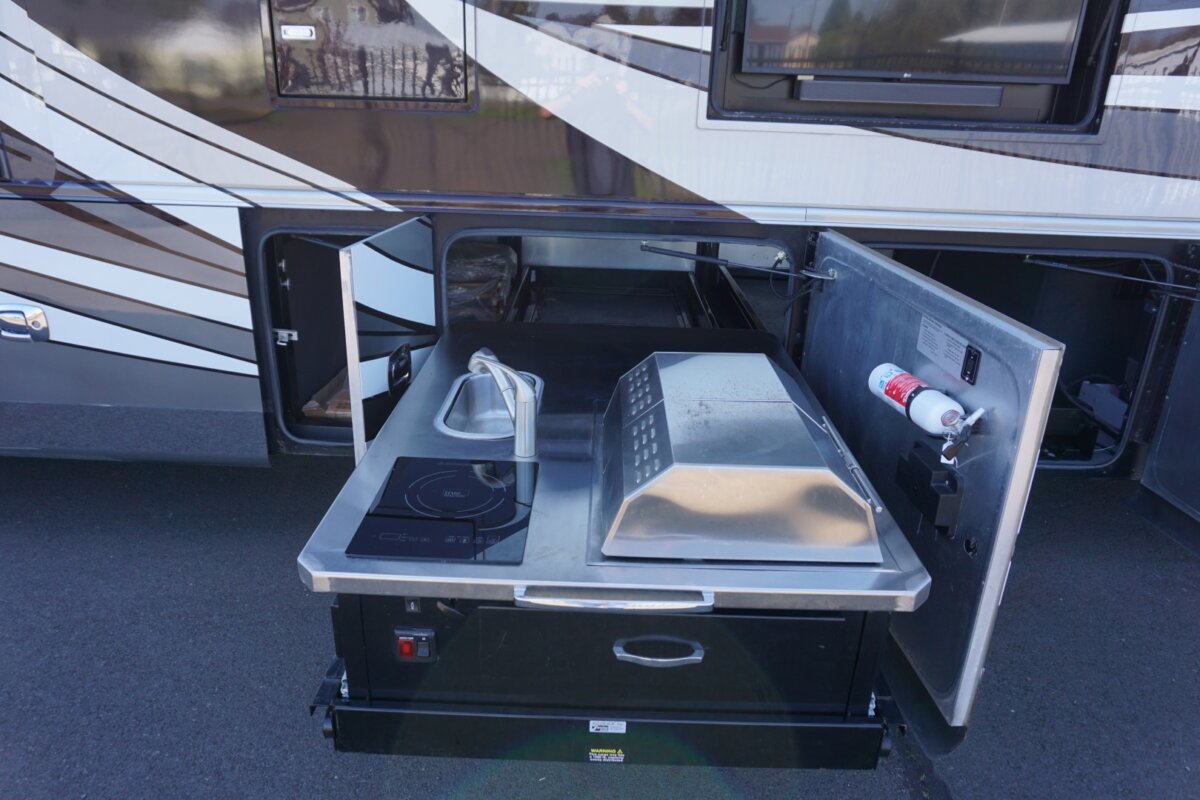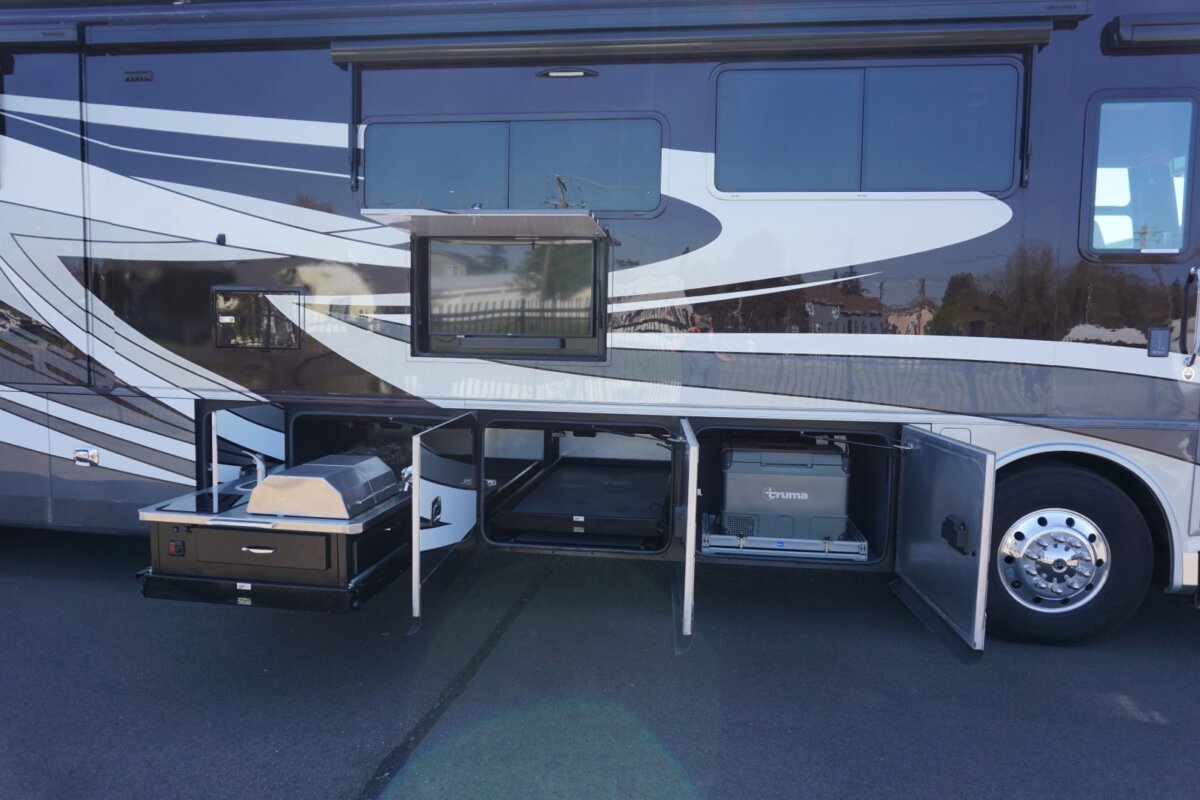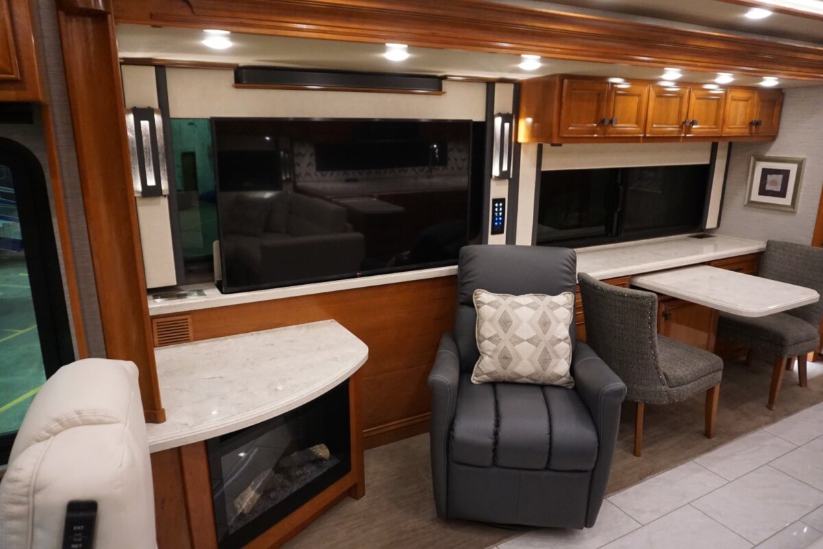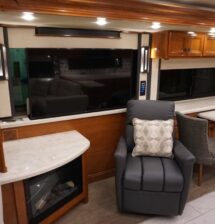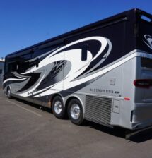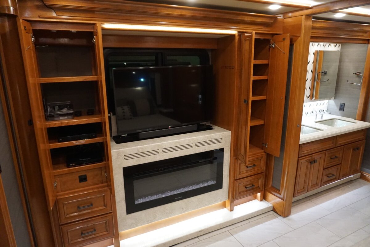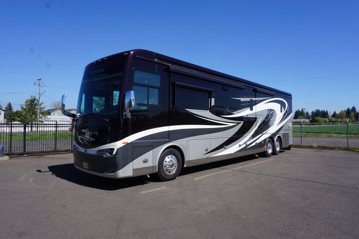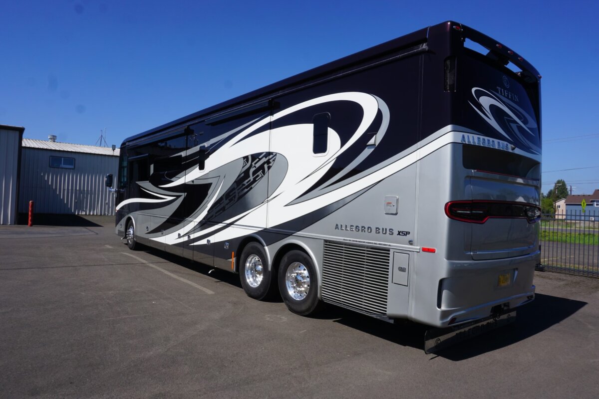 This 2021 Bath And Half 45 OPP Tiffin Allegro Bus is in excellent condition. This is a great floor plan with lots of storage. This coach has too many options to list of all them but here are a few items: Stacked Washer Dryer, Dishwasher, All Electric with Residential Refrigerator and True Induction cooktop, Outside TV , Outside BBQ with sink, TV lift in living room with fireplace, TV lift with fireplace in bedroom, king size bed, huge shower and much much more.