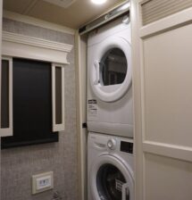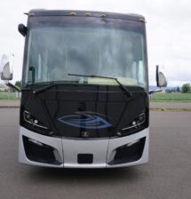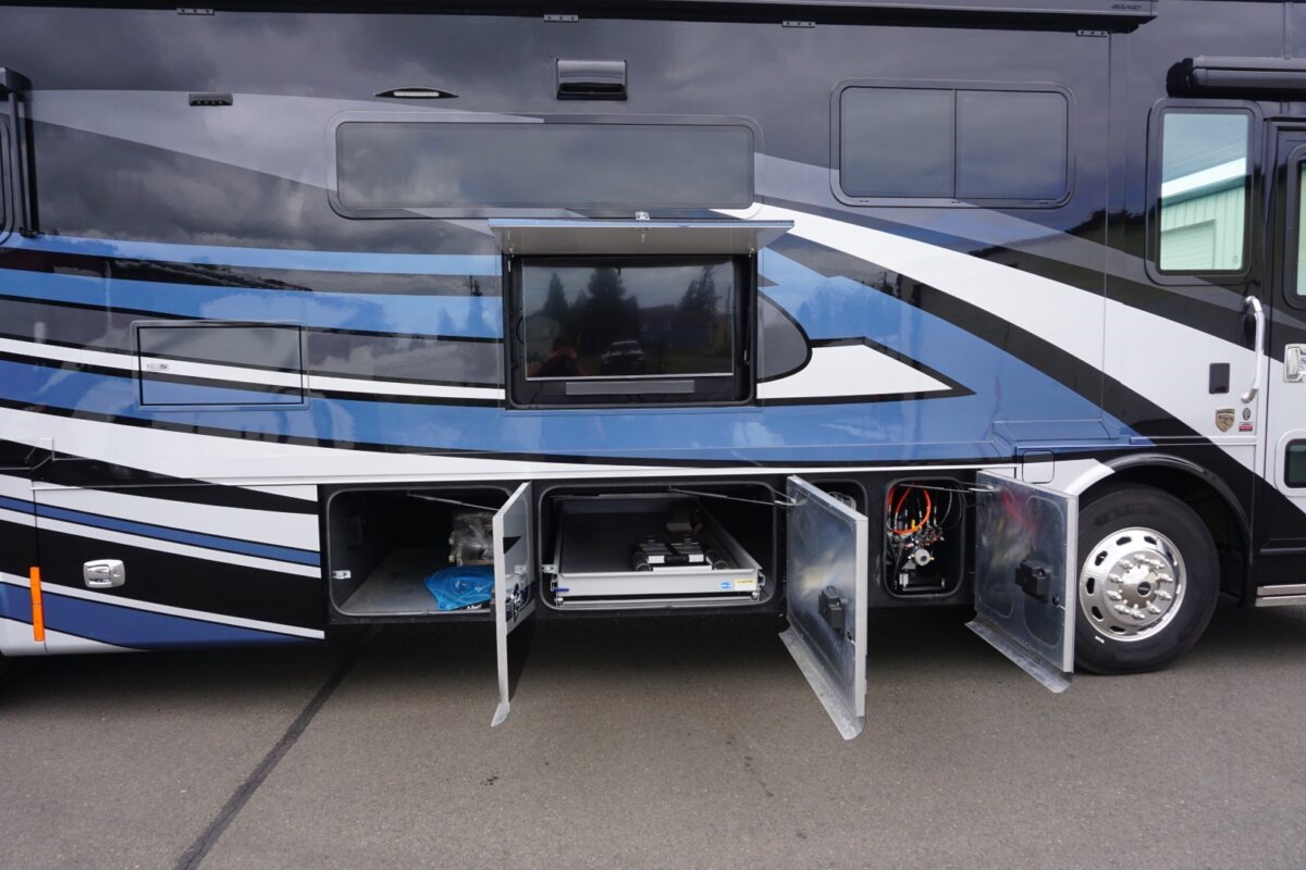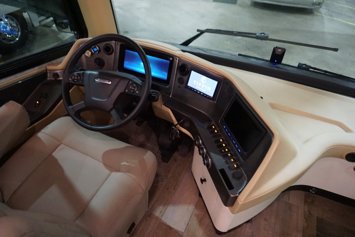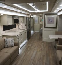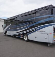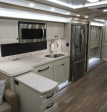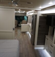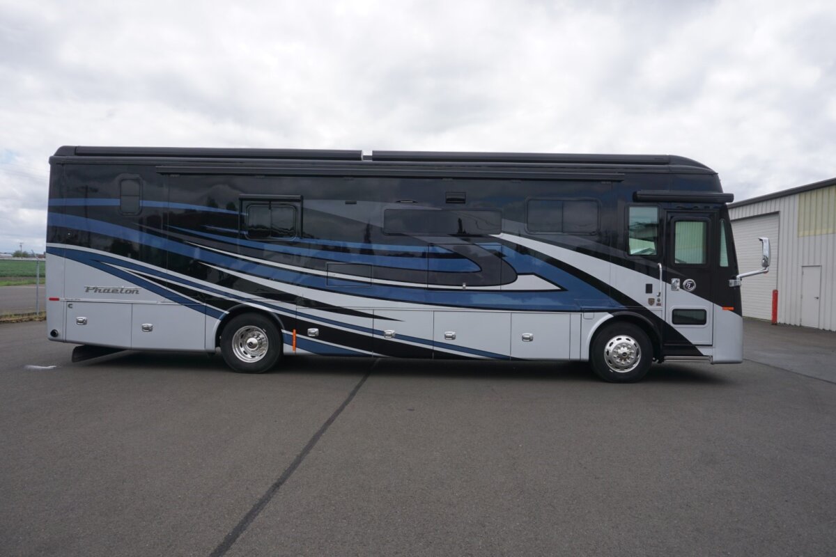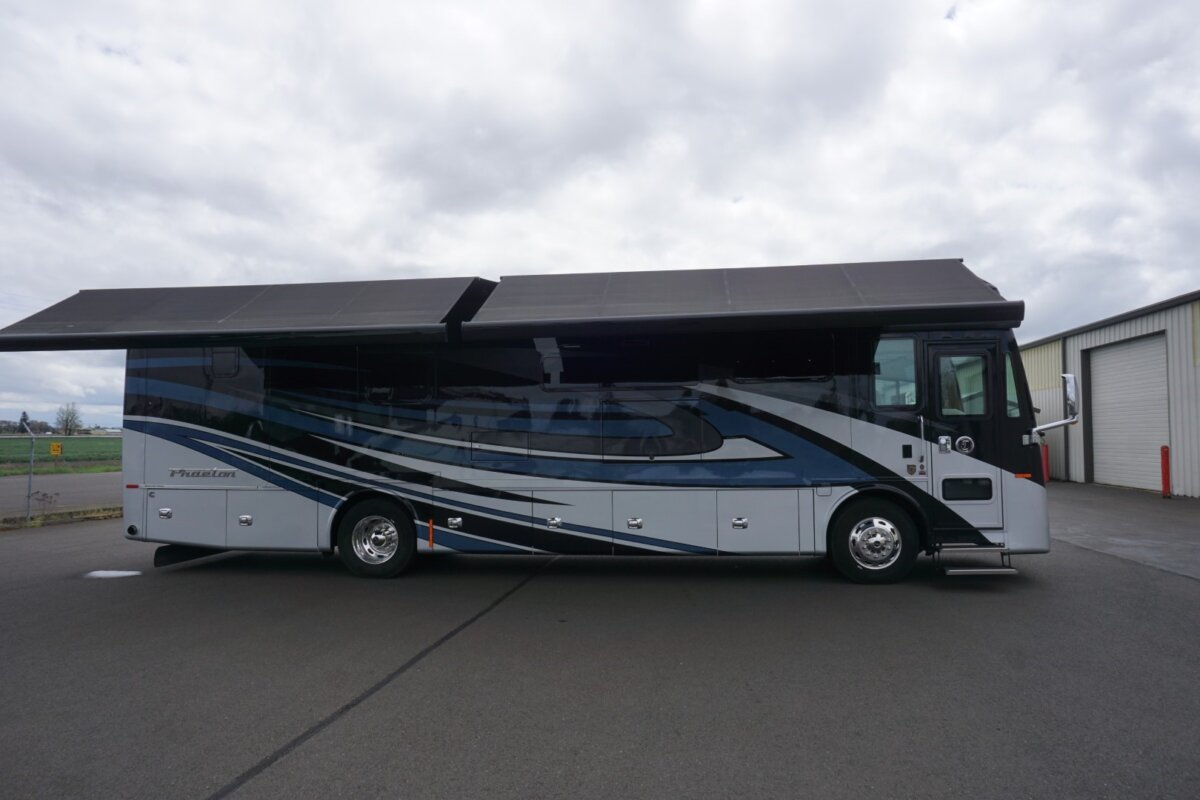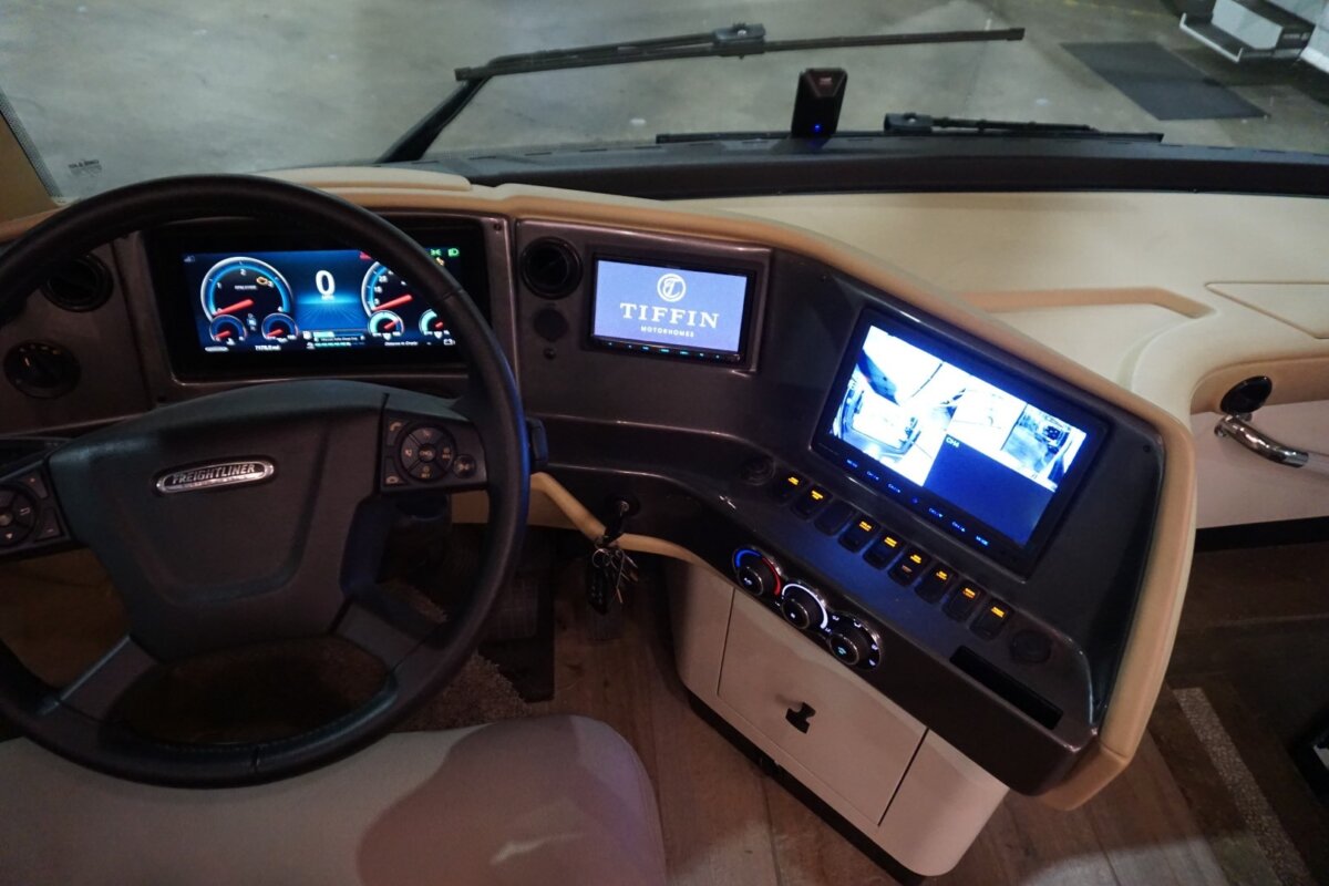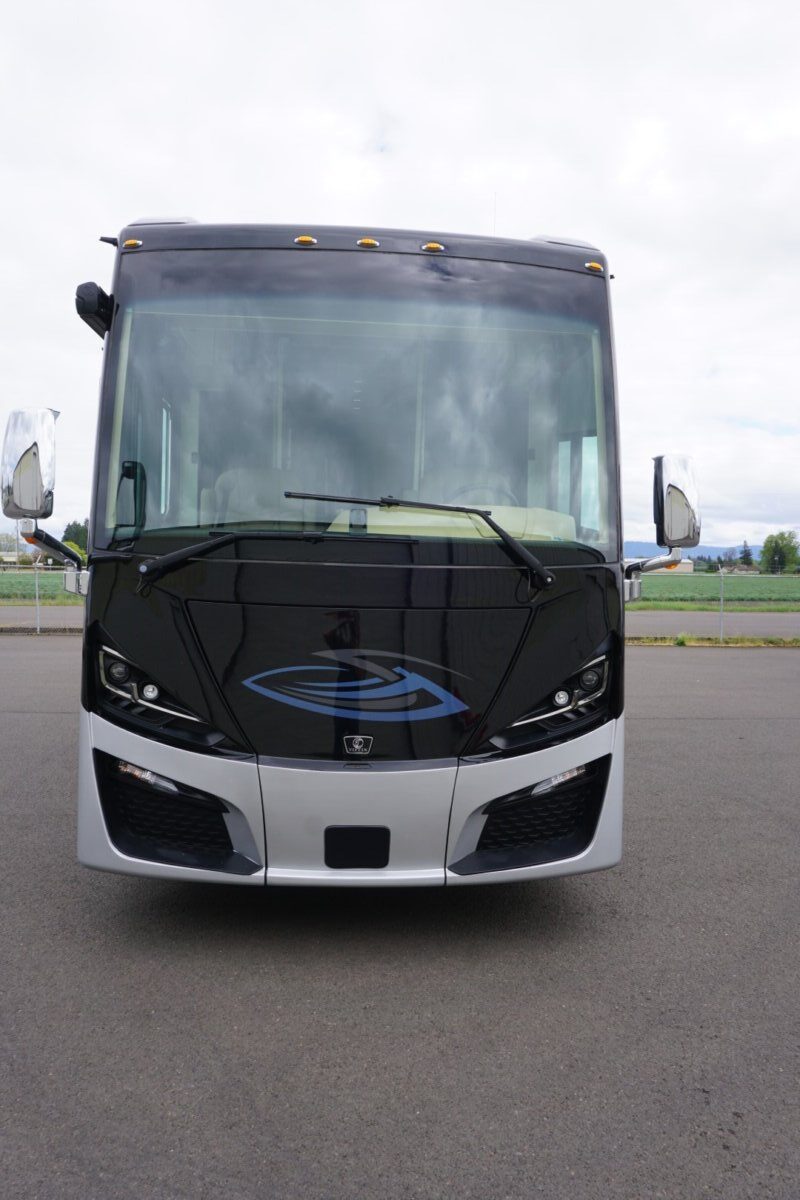 King bed, stacked washer dryer, true induction cooktop, Residential Refrigerator, radiant floor heat, Aqua Hot, 176 hours on Onan Diesel generator, Two electric patio awnings, Outside TV, Digital Dash, 360 Camera system, mobileye collision avoidance and much much more!