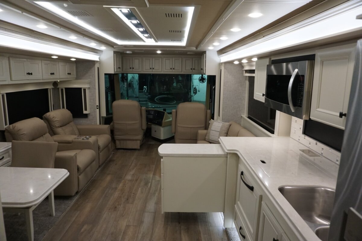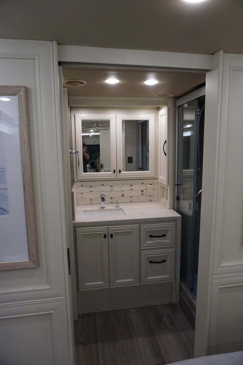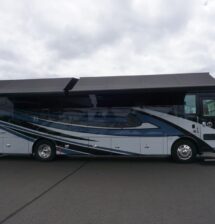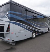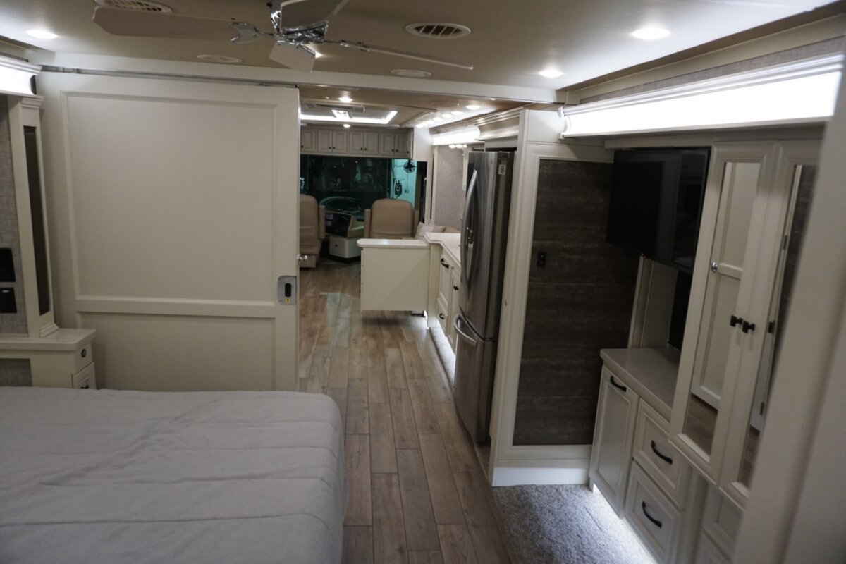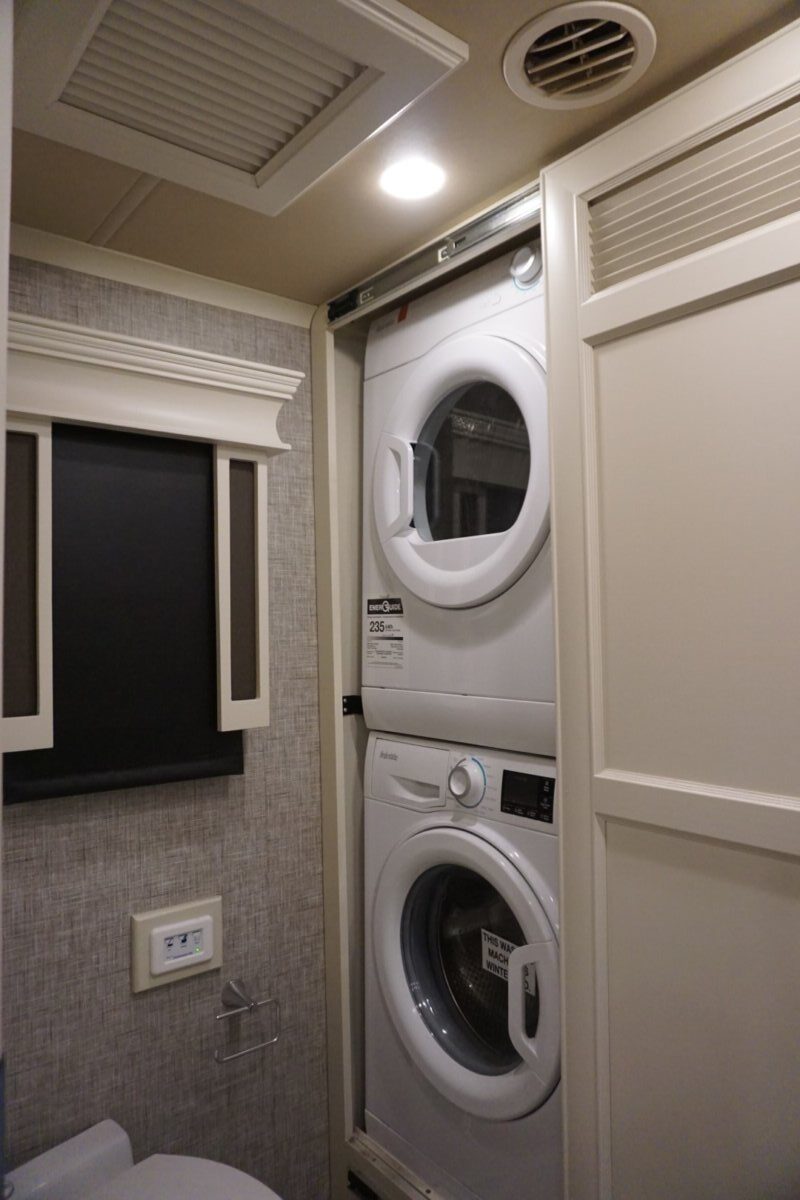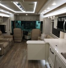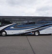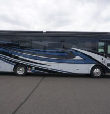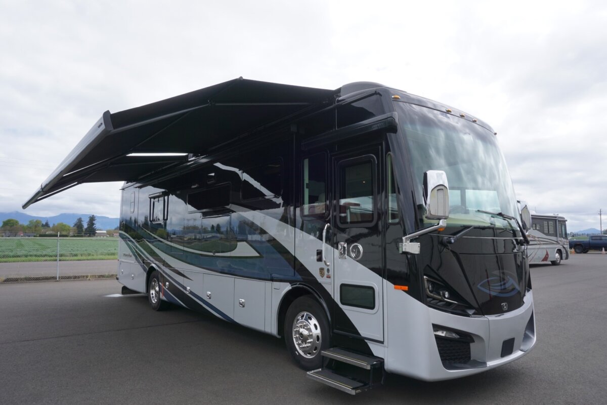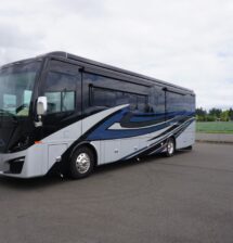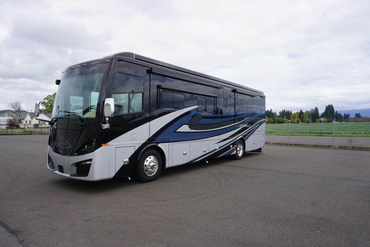 King bed, stacked washer dryer, true induction cooktop, Residential Refrigerator, radiant floor heat, Aqua Hot, 176 hours on Onan Diesel generator, Two electric patio awnings, Outside TV, Digital Dash, 360 Camera system, mobileye collision avoidance and much much more!