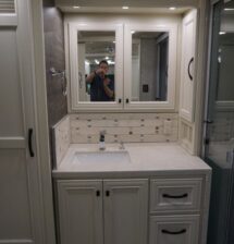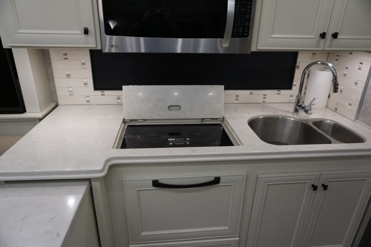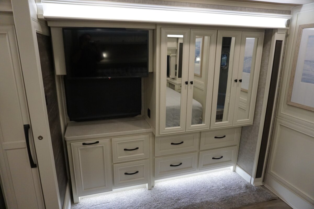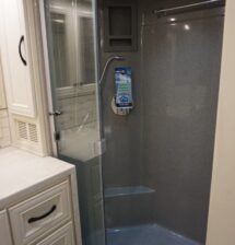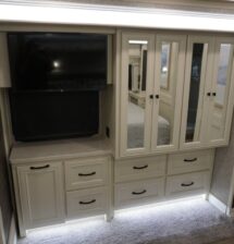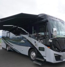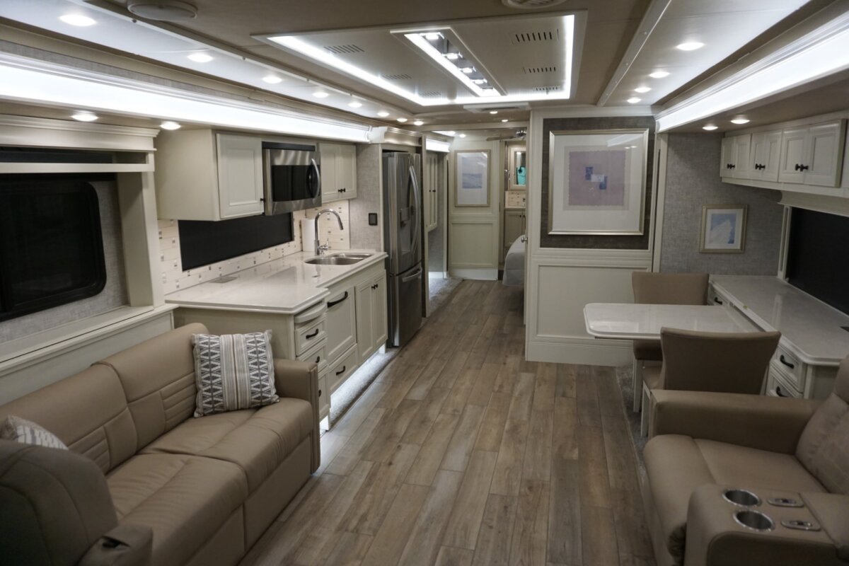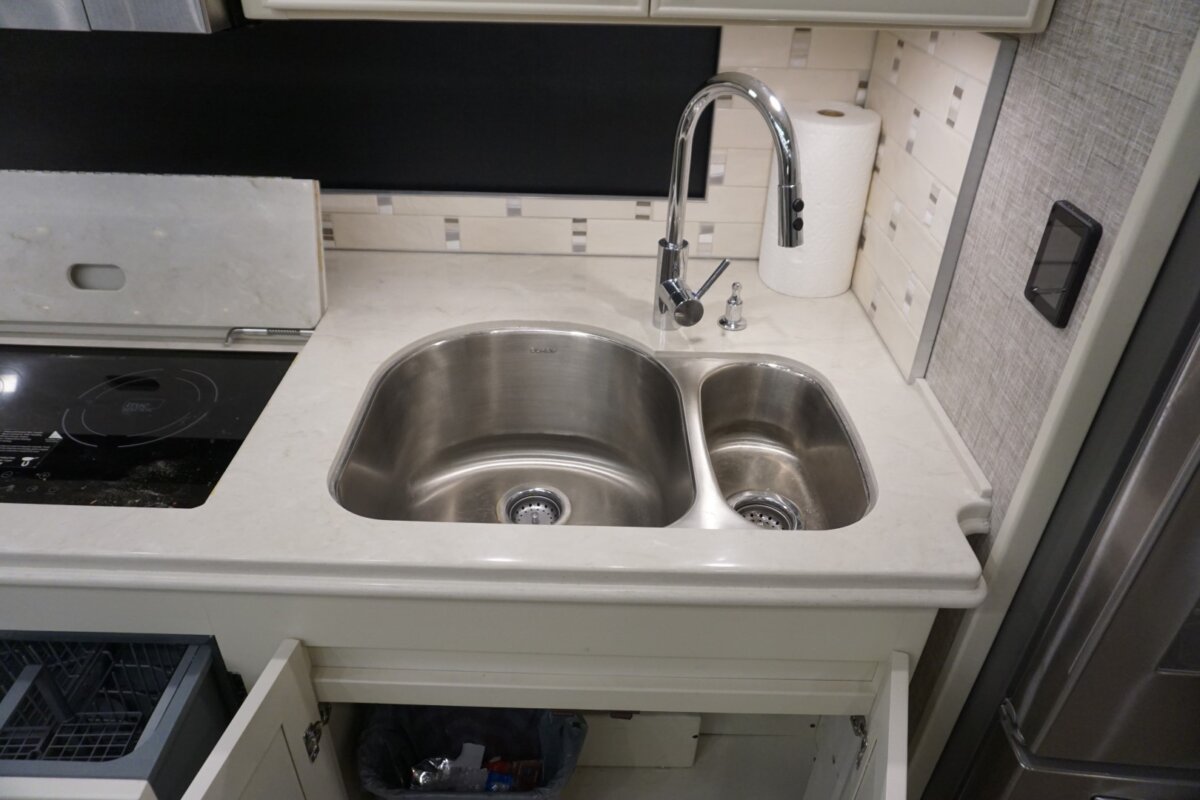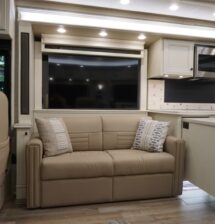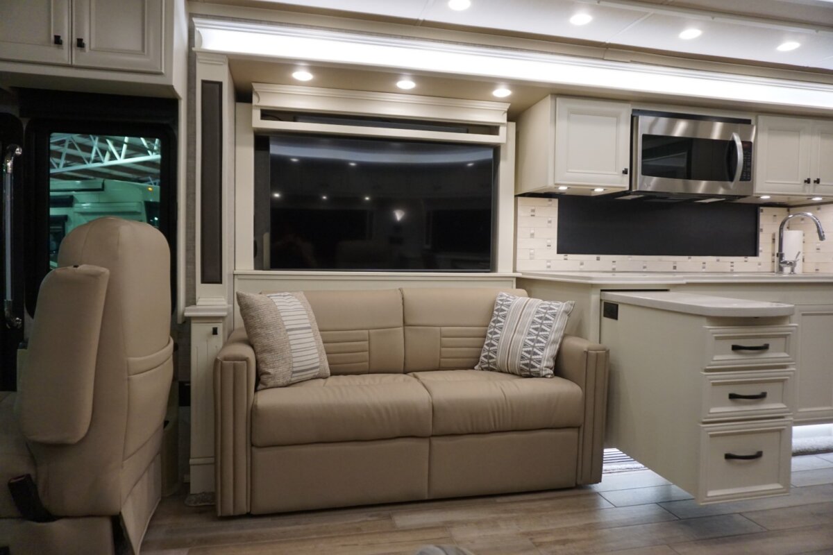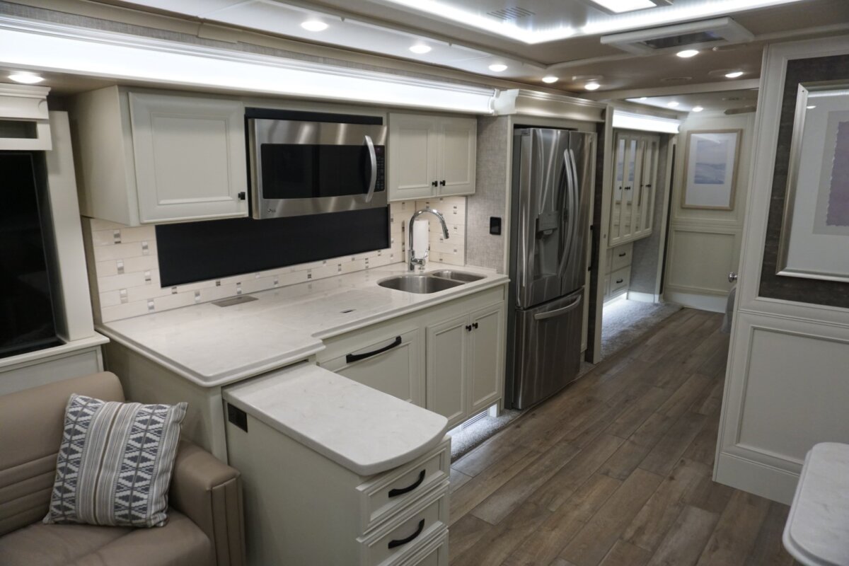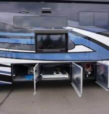 King bed, stacked washer dryer, true induction cooktop, Residential Refrigerator, radiant floor heat, Aqua Hot, 176 hours on Onan Diesel generator, Two electric patio awnings, Outside TV, Digital Dash, 360 Camera system, mobileye collision avoidance and much much more!